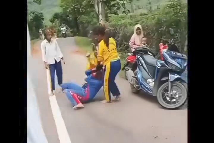 Siswi di Kj, Bima, NTB kekerasan di jalan. Ada sekitar 5 orang memukul dan menampol temannya, selasa (24/12).